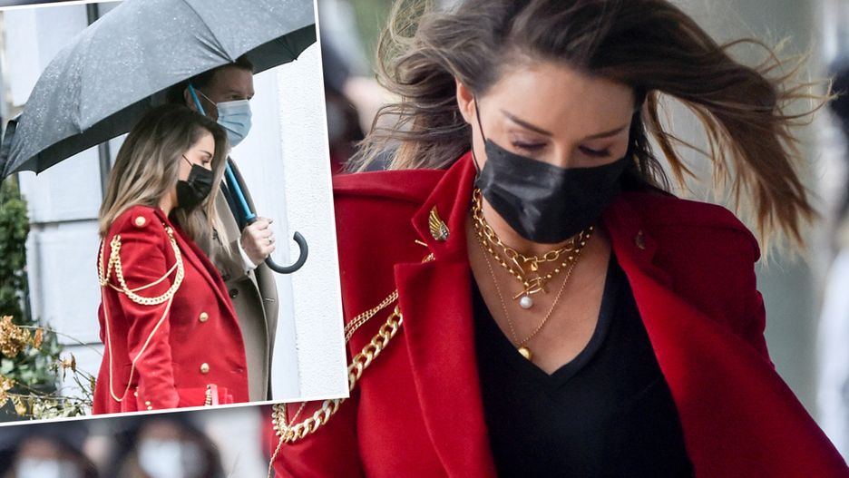 Małgorzata swoją najnowszą zdobycz zestawiła z efektownym, wełnianym płaszczem w tym samym kolorze oraz czarnymi spodniami ze skóry, botkami i topem. Nie zabrakło złotej biżuterii, która nadała całości nieco szyku.