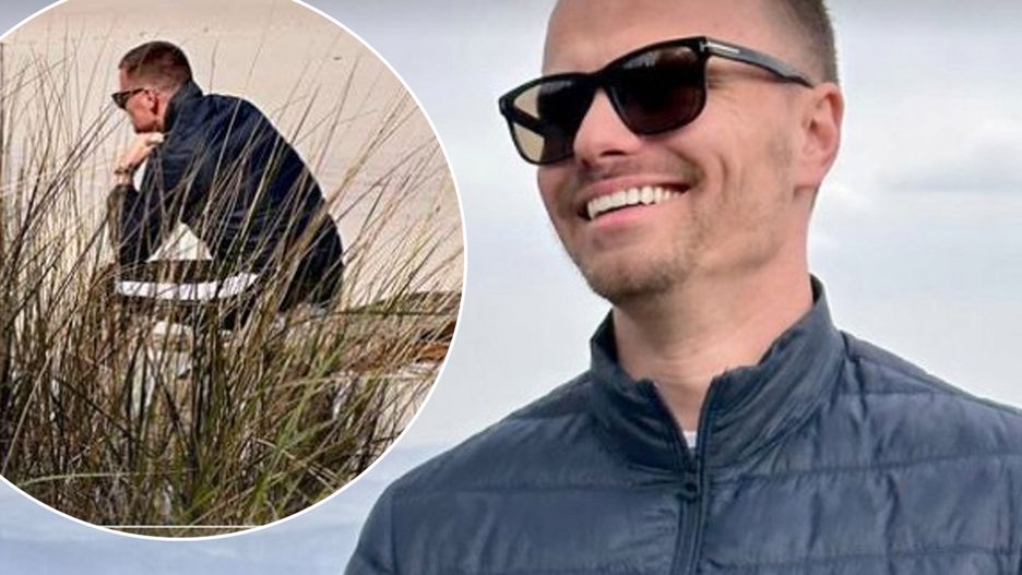 Marcin Hakiel na zdjęciu z plaży. Co widać w okularach?