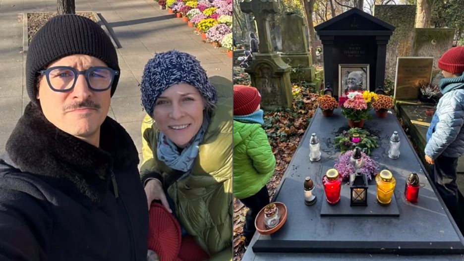 Mateusz Damięcki z rodziną kwestował na Powązkach. Pokazał grób ojca i urocze kadry