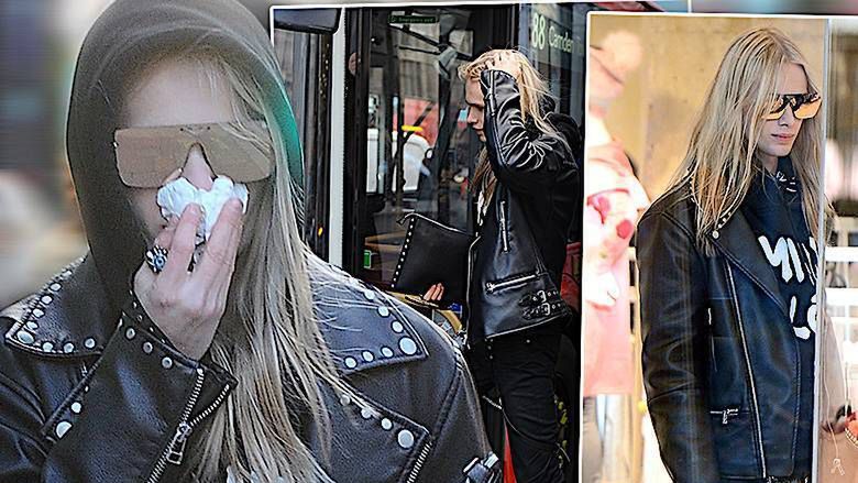 Dający się we znaki smog spowodował, że Mateusz zasłaniał twarz chusteczką higieniczną, a następnie wsiadł do dwupoziomowego, czerwonego busa, który jest jednym z symboli Londynu. Uwagę przykuwały jego różowe botki z damskiej kolekcji marki Top Shop.