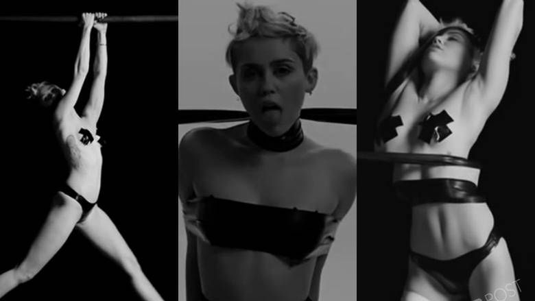 Miley Cyrus rok temu nakręciła głośny "artystyczny" filmik, który nazwała Tongue Tied. To jej autorska produkcja, a w której celebrytka występuje prawie zupełnie nago. Ma na sobie tylko majtki i taśmę, która zakrywa jej sutki. Wokalista wygina się na rurze, tańczy, wije i zmienia "wcielenia", a do tego erotycznie oblewa się czarną farbą. To wideo spotkało się z ogromna fala krytyki środowiska muzycznego. Gwieździe zarzucano brak pomysłu na siebie i odwracanie uwagi od kwestii wokalnych. Miley broniła swoich racji i tłumaczyła się, że nagość to dla niej niezależność, którą sobie bardzo ceni.