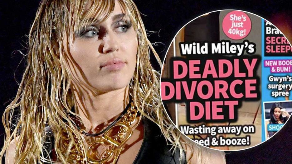 Okładka tygodnika New Weekly! głosi, że Cyrus marnuje się przez trawkę i alkohol, a wszystko to przez zakończeniu małżeństwa. Magazyn twierdzi, że waga piosenkarki spadła do 39 kilo i jest spowodowana nadużywaniem za pomocą narkotyków i procentów. Źródło podobno podaje, że:
