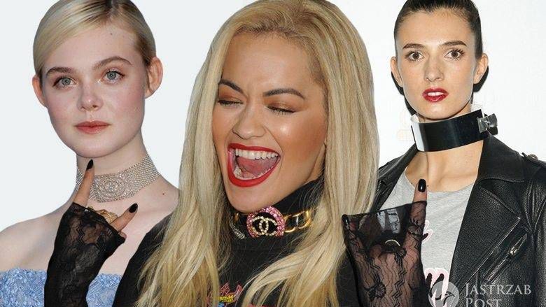 Niektóre gwiazdy, jak Krystyna Mazurówna czy Diane Keaton lubią podkręcać swoje stylizacje rockowymi obrożami. Jednak wiele znanych pań wybiera je w wersji delikatnej, co nie znaczy niezauważalnej. Przykład? Kim Kardashian czy Elle Faning, którym spodobały się naszyjniki z drogocennych kamieni.