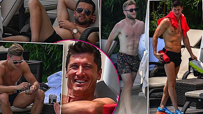 Kibicki będą w siódmym niebie! Polscy piłkarze bez koszulek nad basenem. Lewandowski i reszta pokazali swoje cudowne torsy!