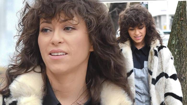 Makijaż jak zwykle bardzo oszczędny, burza loków, które są jej charakterystycznym znakiem rozpoznawczym i duża, nabijana płaskimi ćwiekami torba dopełniły dzieła.