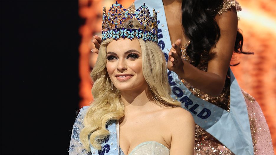 • Miss Poland Karolina Bielawska waves after winning the  70th Miss World beauty pageant at the Coca-Cola Music Hall in San Juan, Puerto Rico on March 16, 2022. (Photo by Ricardo ARDUENGO / AFP)