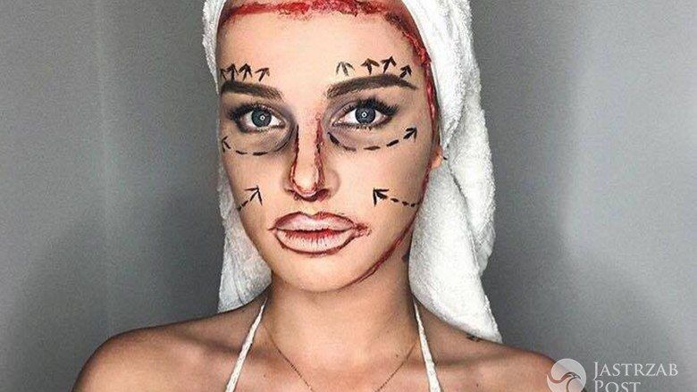 Maffashion na imprezę z okazji Halloween przebrała się za ofiarę operacji plastycznych. Namalowała sobie kreski i linie w miejscach, które najczęściej są operowane przez kobiety. Blogerka zaznaczyła jednak, że inspirację zaczerpnęła z Instagrama.