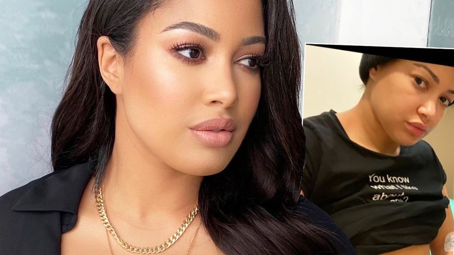 Kazadi niedawno wrzuciła na Instastory porównanie dwóch zdjęć. Na jednym pozuje w przylegającej do ciała, skórzanej sukience. Drugie powstało w szpitalu. Gwiazda nie ma na sobie ani odrobiny makijażu. Siedzi na szpitalnym łóżku i podnosi koszulkę, dzięki czemu widać jej brzuch.