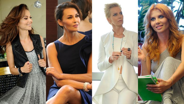Paulina Sykut-Jeżyna postawiła na rozkloszowaną sukienkę i czarny bezrękawnik, Anna Popek na kobaltową kreację bez ramion, Paulina Smaszcz-Kurzajewska na biały luźny garnitur, a Agata Załęcka na szarą, dżersejową sukienkę. Wszystkie wyglądały bardzo efektownie i kobieco.