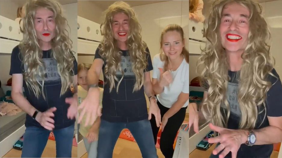 Kompozytor włożył na głowę blond perukę z długimi włosami, pomalował usta szminką w kolorze ognistej czerwieni i wparował do pokoju swoich córek tańcząc do piosenki Let me be your woman w wykonaniu Doja Cat.