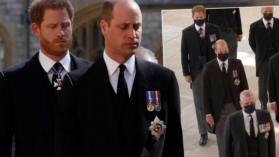 Podczas pogrzebu Filipa bracia spotkali się po raz pierwszy. Rozdzieleni przez starszego kuzyna Petera Phillipsa, szli w uroczystej ciszy w jego procesji pogrzebowej, ubrani identycznie w czarne garnitury i krawaty. To była decyzja królowej, żeby mężczyźni zrezygnowali z mundurów wojskowych. Jednak zarówno William, jak i Harry z dumą pokazali swoje medale na piersiach – to był jedyny, znaczący szczegół, który różnił ich ubrania.