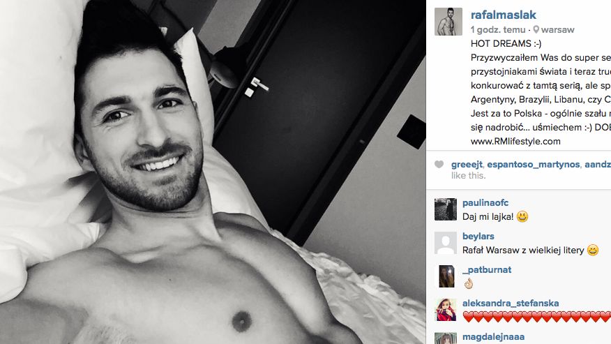 Rafał Maślak przy okazji pobytu w Korei przyzwyczaił swoich fanów do publikowania zdjęć z najgorętszymi uczestnikami wyborów Mister International. Co wieczór wrzucał fotkę z roznegliżowanym modelem z innego kraju. Po powrocie do Warszawy pochwalił się nowym selfie, ale tym razem w wersji solo.
