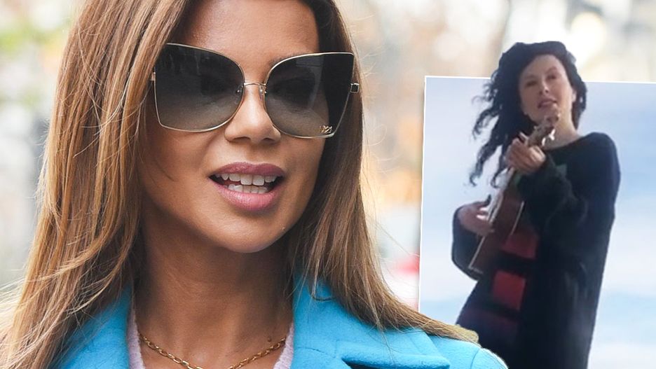 Ubrana jedynie w dłuższy sweterek wzięła ukulele, ruszyła w góry i zaśpiewała wielki przebój swojej idolki:
