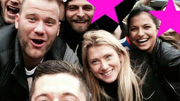 Piłkarz zaraz po meczu zrobił sobie pamiątkowe selfie ze szczęśliwymi kibicami. Była wśród nich żona Lewego, Ania Lewandowska oraz przyjaciele - Jakub Wesołowski i jego Agnieszka - na ich Instagramach również znalazło się to zdjęcie.