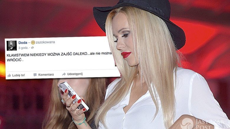 TYLKO U NAS! Doda na Facebooku: "Kłamstwem można zajść daleko". Chodzi o Emila? Mamy komentarz gwiazdy! Wskazała osobę, której dedykuje mocne słowa