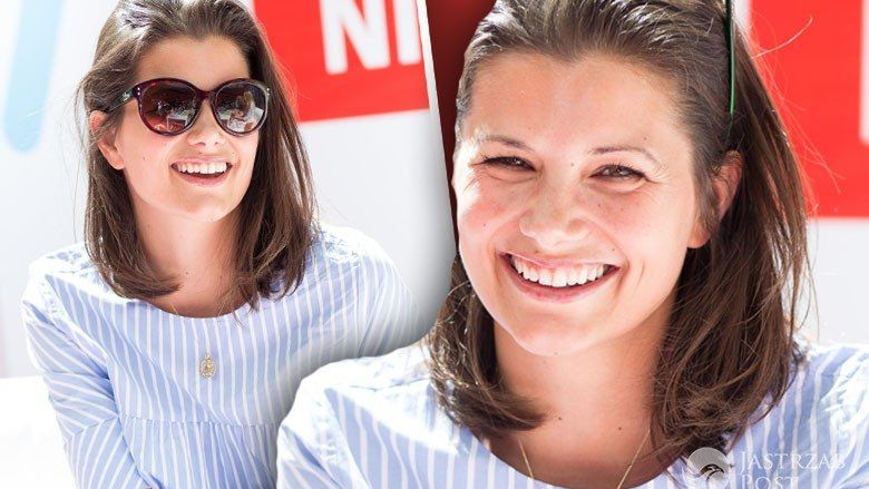 Aktorka czytała dzieciom bajki. Była bardzo uśmiechnięta. Założyła lekką i zwiewną niebieską sukienkę w białe paski. Pogoda dopisała, więc letnie stylizacje były bardzo na miejscu. Dobrała do tego delikatną biżuterię i duże okulary przeciwsłoneczne.
