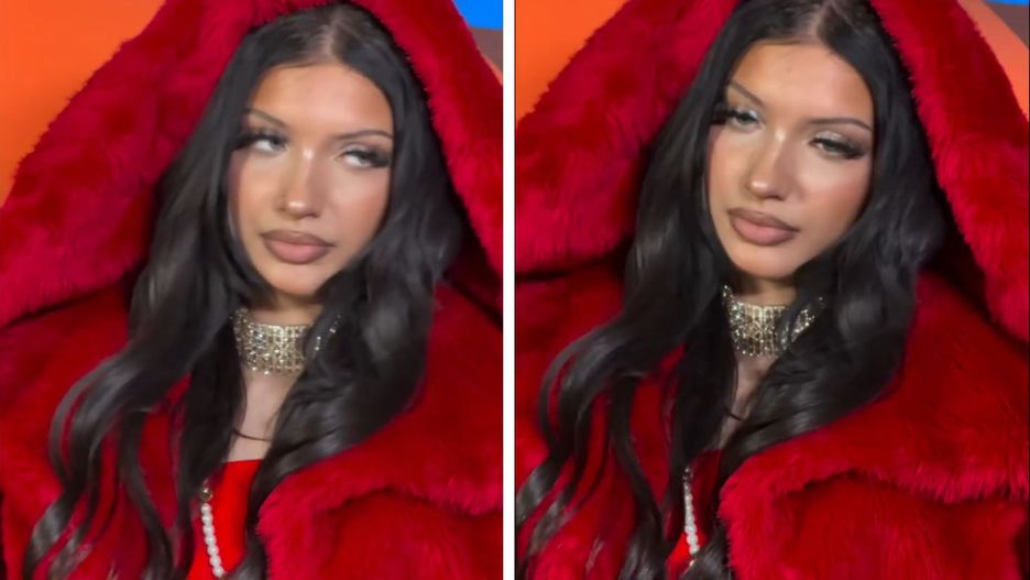 Viki Gabor w czerwonym futrze
