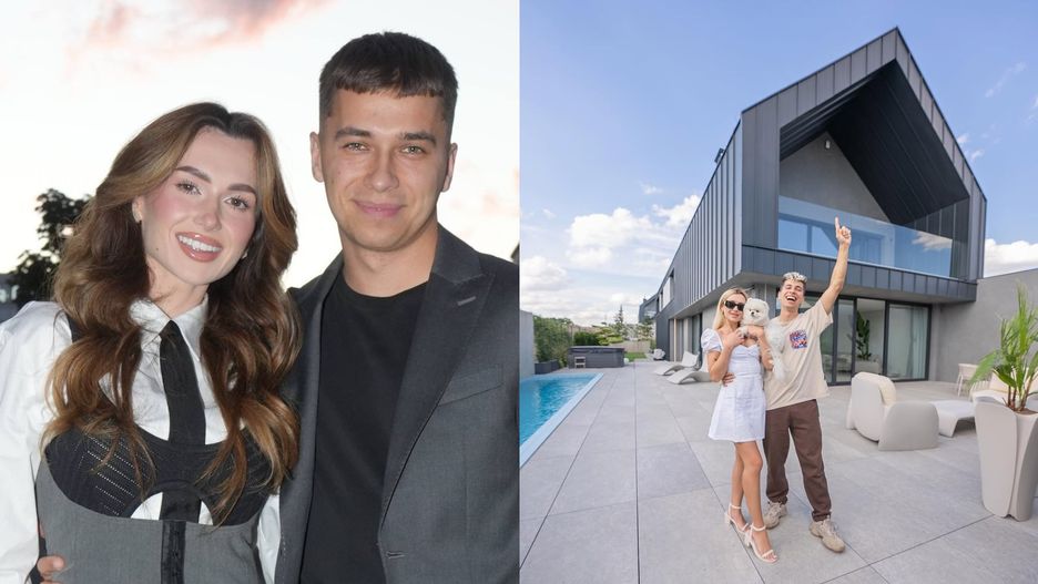 Dom znajduje się w okolicach Krakowa, z dala od miejskiego zgiełku. Nowoczesna bryła od razu przyciąga uwagę – duże przeszklenia, jasne elewacje i minimalistyczne formy sprawiają, że willa wygląda jak przeniesiona z południa Europy. Nieprzypadkowo – inspiracją był grecki hotel, w którym para spędzała wakacje w 2021 roku. Całość otacza wysoki mur, który zapewnia prywatność.