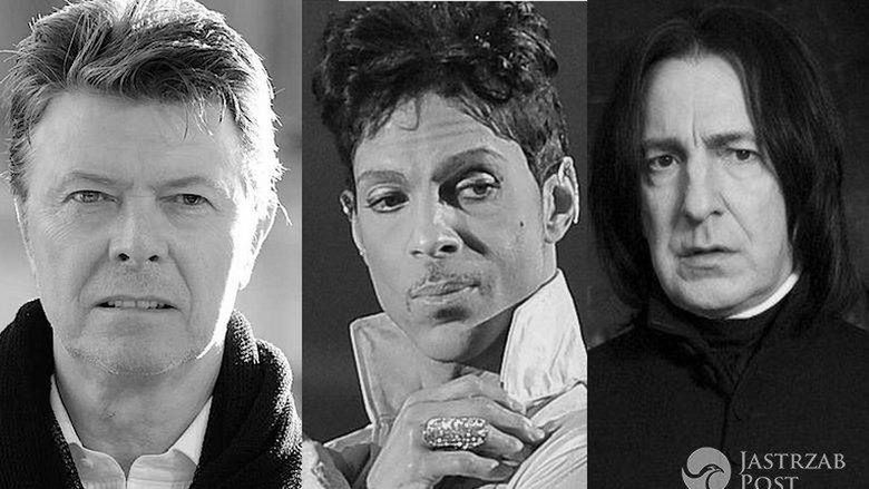 W tym roku świat pożegnał kilka wybitnych osobowości sceny muzycznej i srebrnego ekranu. Należą do nich wielkoformatowi muzycy David Bowie (8.01.1947-10.01.2016), Prince (07.06.1958-21.04.2016) oraz sławni aktorzy Alan Rickman (21.02.1946-14.01.2016) i Anton Yelchin (11.03-1989-19.06.2016). Każdy z nich zdążył zrobić oszołamiającą karierę, jednak trudno pogodzić się nam z ich śmiercią.