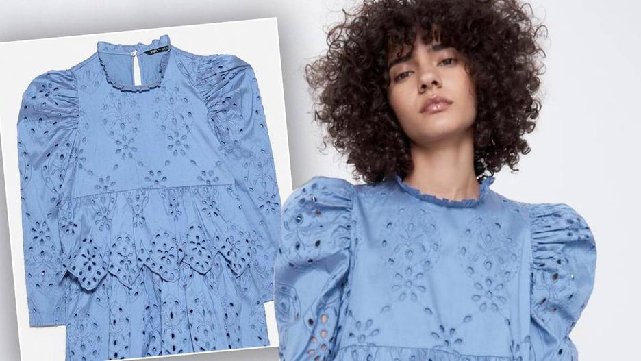 Zara wyprzedaje ażurową, niebieską sukienkę
