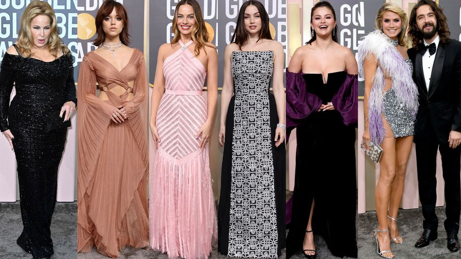 Kreacje na Złotych Globach 2023, wśród których dominowały cieliste kolory, niewychodząca z mody czerń i odcienie różu, dumnie prezentowały: Jenna Ortega, Heidi Klum, Laverne Cox, Milly Alcock, Jennifer Coolidge, Julia Garner, Selena Gomez, Anya Taylor-Joy, Hilary Swank, Letitia Wright, Michelle Williams, Lily James, Salma Hayek, Margot Robbie, Ana De Armas, Tom Kaulitz, Eddie Redmayne, Jessica Chastain.