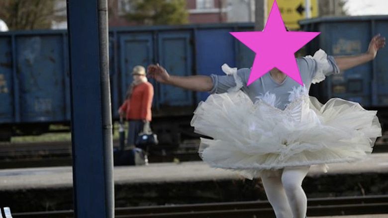 Trzeba przyznać, że to ciekawy sposób na promowanie filmowego wydarzenia... A Marcin w stroju baletnicy wygląda uroczo! Widzieliście te świetne nogi? :)